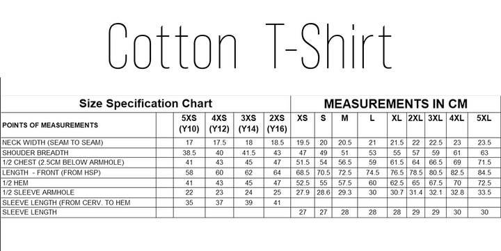 5XS (Y10NB), 4XS (Y12NB), 3XS (Y14NB), 2XS (Y16NB), XS, S, M, L, XL, 2XL, 3XL, 4XL, 5XL |